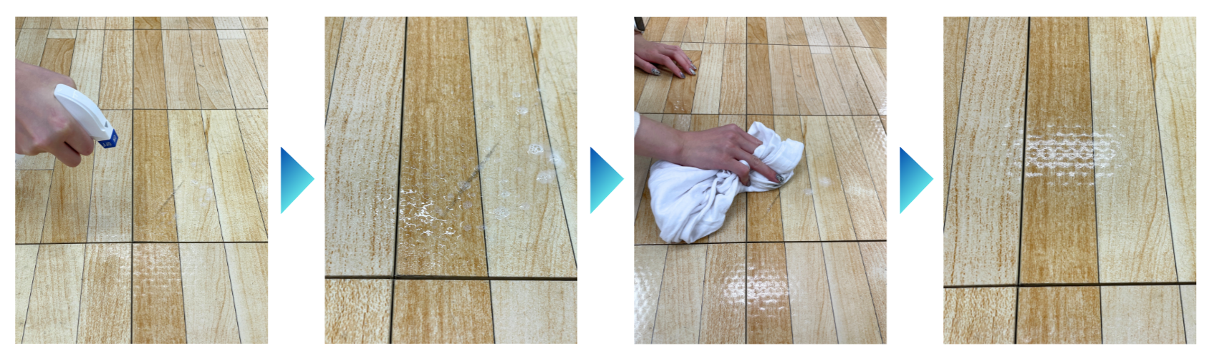 2.汚れが気になる部分に直接スプレーし、少し置いて汚れを浮かせます。