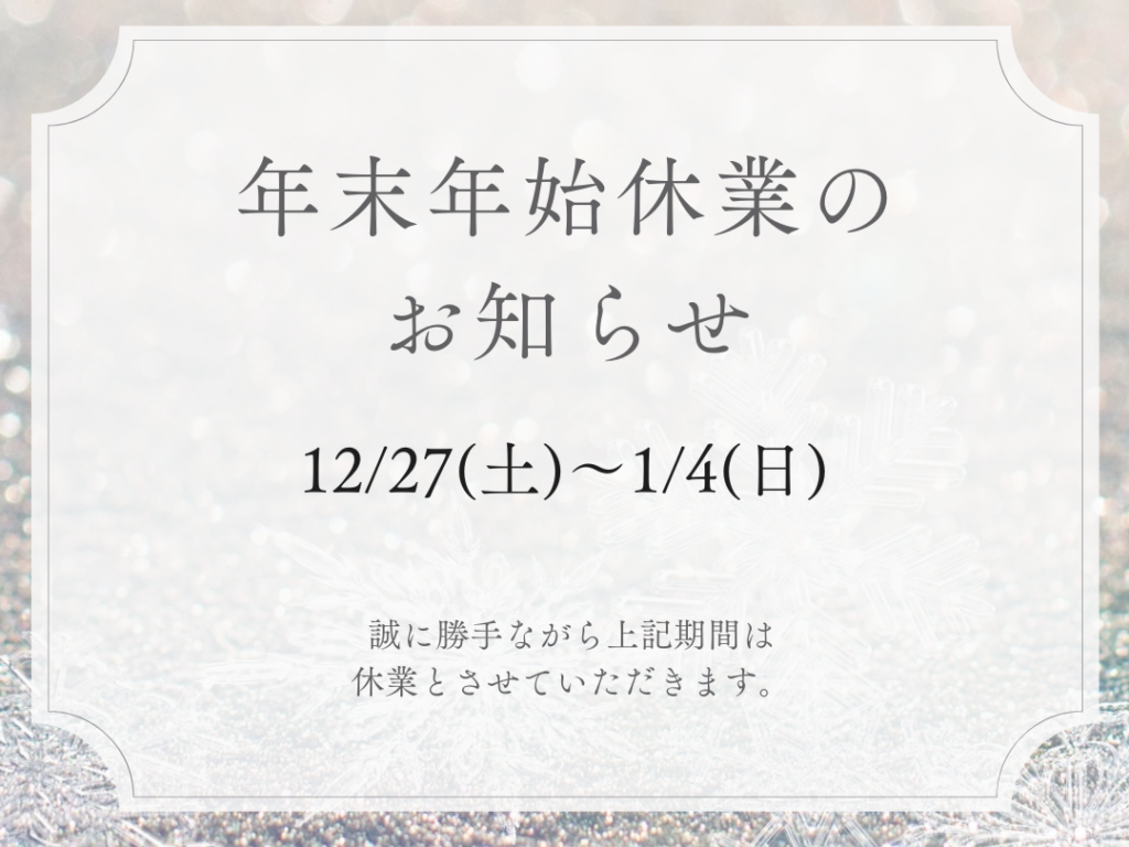 年末年始の休業のお知らせ